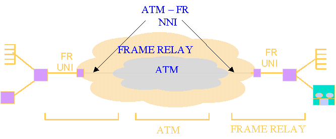 _________________ __________ Virtual Channel connections and Virtual Path Connections provide User-to Network Interface (UNI) and Network-to-Network Interface (NNI) transfer with network switching happening at Virtual Channel, Virtual Path and Transmission Path levels. The Virtual Channels mapped into Virtual Path and the Transmission Path form Virtual Channel Connection. The aggregate bundles of Virtual Channels mapped into Virtual Paths form Virtual Path Connections. UNI and NNI specifications to interface a Frame Relay network to an ATM network are defined by Frame Relay Forum and ATM Forum.