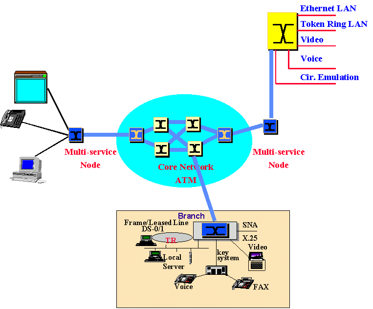 Module 4 - ATM Technology Slide 37 of 46 _________________ __________ ATM Technology Application # 1 - Traffic Consolidation _________________ __________ ATM Technology Application # 1 - Traffic Consolidation The network becomes simple, no more multiple networks, just one access to the ATM network in each location with unified network control.