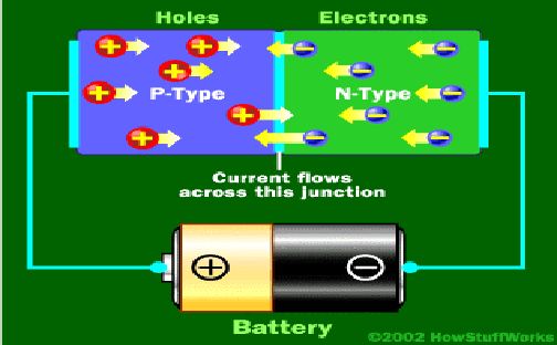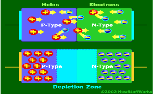 Silicon is doped with neighbouring elements to create a semiconductor with free electrons (N-Type) or with holes (P-Type) where electrons can go. A diode comprises of a section of N-Type material bonded with P-Type material. P-Type conductor is created by adding Phosphorous or Arsenic to Silicon. N-Type conductor is created by adding Boron or Gallium to Silicon. How does LED work? When no voltage is applied to the diode, electrons from the N-Type semiconductor fill holes in P-Type semiconductor between the layers. A depletion zone is created in the middle of the diode. The depletion zone disappears when electrons move from N-Type area to P-Type area and holes from P-Type area to N-Type area. Free electrons falling into empty holes release energy in the form of photons. Reverse polarity attachment to the diode creates the depletion zone. The interaction between electrons and holes generates light. Laser Diodes - There are many different type of lasers. The laser material can be a solid, gas, liquid or semiconductor. These lasers are small and use low power. In an atom electrons spin around the nucleus in orbits ( See Silicon electron structure). Electrons can be exited to go to the higher orbit. The level of excitation depends on the amount of energy that is applied to the atom via heat, light or electricity. Once the electron moves to a higher-energy orbit, it wants to return to the original state. When it does, it releases its energy as a photon - a particle of light. Diodes are used to emit light wavelength.