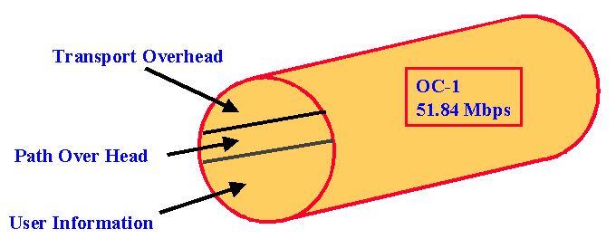 Module 5 - SONET, WDM, DWDM and B-ISDN Technologies Slide 37 of 76 _________________ __________ STS-1 Structure _________________ __________ STS-1 frame carries 9X90 8 bit bytes at 51.840 M bps. The breakdown of the STS frame is as follows: Transport Over Head (TOH) - 1.728 M bps Path Over Head (POH) - 0.576 M bps User Information Payload - 49.536 M bps