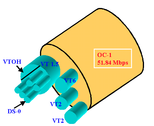 Module 5 - SONET, WDM, DWDM and B-ISDN Technologies Slide 38 of 76 _________________ __________ SONET Line Rates VTOH - Virtual Tributaries Over Head _________________ __________ Virtual Tributaries are mapped into the STS-1 line rate. Optical transmission line rates are specified from 51.84 M bps to 9.953 G bps. The SDH line rates start at OC-3 level.