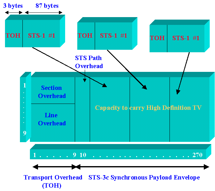 Module 5 - SONET, WDM, DWDM and B-ISDN Technologies Slide 41 of 76 _________________ __________ Concatenated Payloads _________________ __________ STS-1 frames are mapped into higher order signals. A STS-3c payload envelope can carry High Definition TV signals.