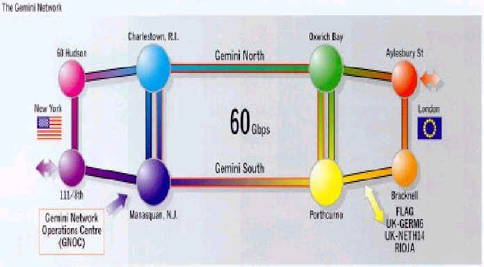 physically remote cable landing stations, two in the USA and two in Network Architecture: The network consists of multiple SDH rings to provide city-to-city connectivity. WDM over multiple fibers enables higher transmission capability. The system has 30 G bps of customer capacity with 30 G bps of in-system standby restoration capacity. _________________ __________