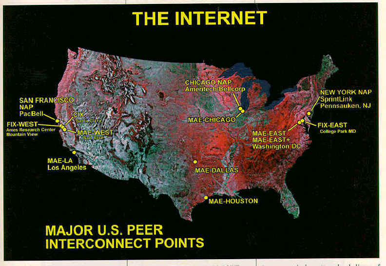 _________________ __________ The U.S. has many high speed network providers for Internet customers and ISPs. These networks link at NAPs. The MAE exchange points are actually places where vendors attach their routers, so that they can exchange data with each other. The NAPs are often ATM switches. Chicago is one of the NAPs. The Chicago NAP connects 127 customers. The following table shows few of the customers: