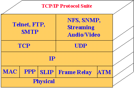 _________________ __________ A computer must be configured with the user address and subnet mask to transmit and receive data on a network using protocols included in the TCP/IP protocol suite. Telnet, File Transfer Protocol (FTP), Simple Mail Transfer Protocol ( SMTP), Network File System (NFS) and Simple Network Management Protocol (SNMP) are higher level protocols. Media Access Control (MAC), Point-to-Point Protocol (PPP) and Serial Line Internet Protocol (SLIP) are link layer (OSI model) protocols. IP Address - All hosts that use TCP/IP as their networking protocol must have an IP address which is a number that other computers and devices use to locate the host for communications (slide 19). Subnet Mask - A subnet mask is a 32 bit number that is used to identify the network and sub-network portion of an IP address. It looks like 255.0.0.0 which indicates that the first octet of the corresponding IP address is net identification and the remaining three identify the specific host..