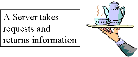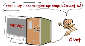 _________________ __________ The Internet network has many servers and user computers connected to it. Client - A client is a software program, which resides in a user's computer and asks or requests information from a server. Anyone looking for a web page will use a web client to access a web server. To get e-mail one will use an e-mail client. Netscape and Internet Explorer have several different clients built into them. Both browsers can act as clients for web, gopher, ftp and e-mail. Server - A server is a computer and/or a software package that provides requested information to clients. Client software has to match up to a specific kind of server software and each server requires a specific kind of client software. There are different kinds of servers. A server could be software or hardware. Servers are available for web, e-mail, ftp, chat, and many others. Servers are available on many platforms: UNIX, Mac, Windows 95/98, Windows NT, Linux and many others. A single hardware server could have several different types of server software packages running on it.
