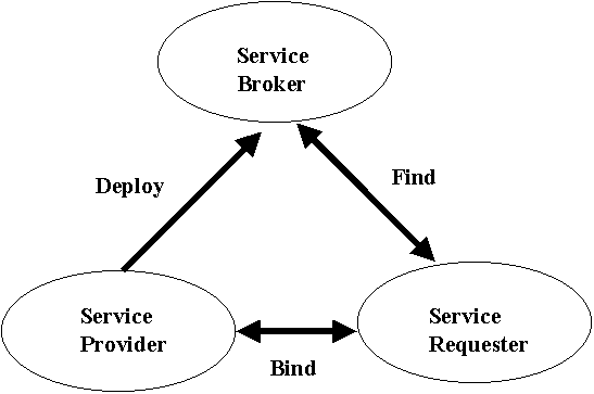 A service provider simply deploys Web Services. A service requester tries to find Web Services using the service broker; if it finds a Web Service it wants to use, it tries to set up a contract with the service provider in order to use the Web Service.