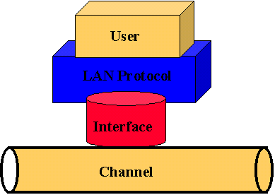_________________ __________ A Local Area Network contains four components that transport data between end users: channel, the physical interface, protocol and user station. Channel: A channel consists of twisted pair, coax cable or optical fiber. Coax cable and optical fiber are used because of their large transmission capacity, a good signal-to-noise ratio, low signal radiation and low bit error rate. Interface: The interface between a user station and the channel can be a CATV tap, infrared diodes, microwave antennas or LEDs for Optical fiber. Protocol: Controls the LAN and provides end user access onto the network. CSMA/CD and Token Passing are the dominant LAN protocols. Workstation: A PC to a mainframe computer.