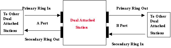 _________________ __________ Major components of an FDDI networks are: Dual Access Stations, Single Access Stations and Concentrators. Most FDDI networks contain concentrators with few DAS on the main ring. Most devices are connected to the main ring concentrators. Dual Attached Stations (DAS): These stations support the secondary ring which provides survivability from a cable break or failed station. Single Attached Station (SAS): These stations are attached to the network and do not have redundancy. SAS are connected to the main ring through concentrators.