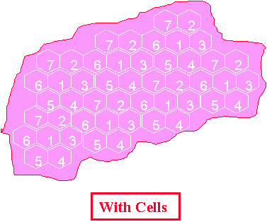 ________________ Cellular mobile radio systems get their name from a technique used to divide a large geographic area, like a metropolitan area, into a series of small hexagonal shaped cells. A hexagonal shape chosen for a cell is very close to the circular coverage of a base station. The shapes fit together to cover the area completely. Individual cells have a typical radius of coverage from 2 to 8 miles. Low power transmitters and receivers with low antennas are placed in each cell and connected via wirline to the central switching computer known as the Mobile Switching Center. The Mobile Switching Center is connected to the PSTN. A cell-cluster includes 7 cells.