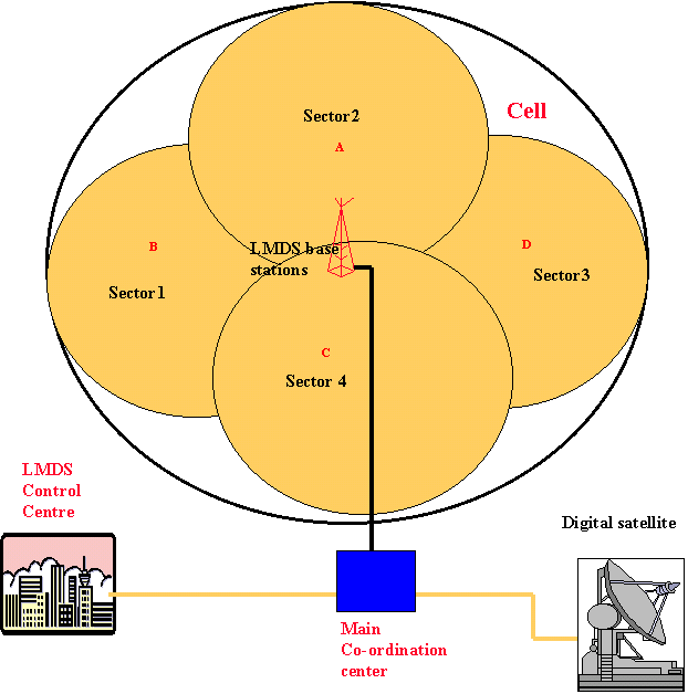 Capacity LMDS Network Architecture: A metropolitan area with 4 sectors. Cellular Network Capacity