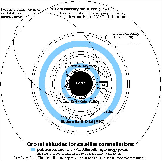 uses FDMA and TDMA for signal multiplexing. The system is dormant at present. Globalstar - A LEO system with 48 satellites. This system supports voice, low-rate data, messaging and fax. Spaceway - A MEO system with 20 satellites. It is designed to support two-way high-speed Internet and telephone calls.