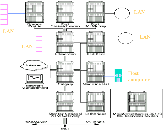 TELUS Broadband Network Equipment and Services: TAC deployed Newbridge MainStreetxpress36170 Multi-service switches for its broadband network. The switch is capable of interconnecting and switching cells between T-1, E-1, T-3, E-3, OC-3, STM-1, OC-12 and STM-4. TELUS , now, capable of offering cell relay, Frame Relay, circuit emulation and inter-working services to their customers. _________________ __________